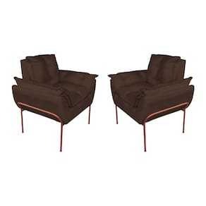 Kit Poltrona Decorativa Suede Marrom Base Cobre - Vallisa Decor