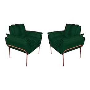 Kit Poltrona Decorativa Suede Verde Base Metálica Cobre - Vallisa Decor