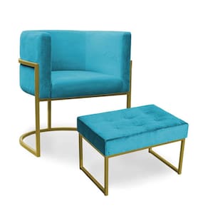 Kit Poltrona e Puff Luana Base Gold Veludo Azul Turquesa - Montanaris Decor