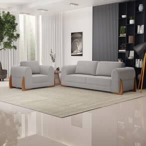 Que tal o Conjunto de Poltrona e Sofá Living Bloom 220cm 03 Lugares com Pés de Madeira?