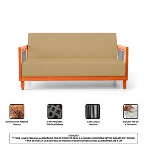 Kit Poltrona E Sofá Varanda Samoa Madeira Maciça Com Cordas Náutica Linho Dourado - Desk Design - Blush