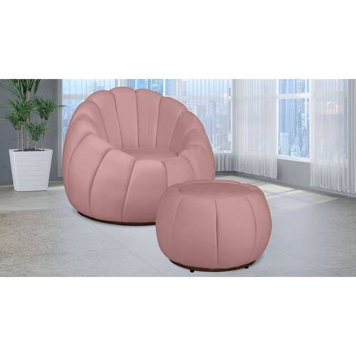 Características do Produto: Densidade da espuma: D-24; Base da poltrona arco giratório; Base do puff pés de sapatas plásticas; Revestimento: Tecido Veludo; Material da estrutura: Madeira de eucalipto; Suporta até 150 kg sem impacto; Montagem: O produto é enviado montado; Garantia: 90 dias (defeito de fabricação).