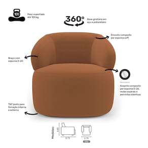 As percintas elásticas no assento aumentam a resistência e durabilidade, enquanto os braços, com espuma D-20, oferecem suporte adicional. A base em aço giratório e poliuretano da Poltrona Glee não só permite uma rotação suave, mas também acrescenta um toque moderno ao seu espaço.