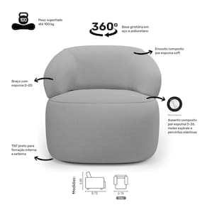 As percintas elásticas no assento aumentam a resistência e durabilidade, enquanto os braços, com espuma D-20, oferecem suporte adicional. A base em aço giratório e poliuretano da Poltrona Glee não só permite uma rotação suave, mas também acrescenta um toque moderno ao seu espaço.