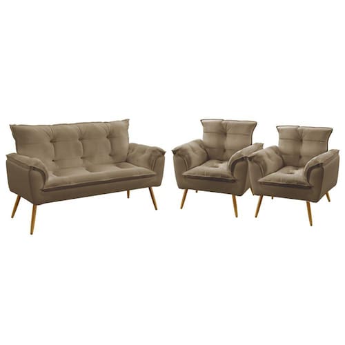 Características do Produto: Madeira de eucalipto proveniente de reflorestamento Fixação com grampos galvanizados Espuma Poliuretano D20 Enchimento com fibra siliconada e flocos Produto costurado Poltrona almofadada Revestimento: Sued Cor: Capuccino Tamanho: Único Possui pés: Sim Tipos de pés: Pés palitos Possui 12 pés palitos de 25 cm Poltrona suporta até 90 kg Poltrona namoradeira suporta até 180 kg Embalagem: plástico bolha, papelão ondulado, plástico Garantia de 3 meses contra defeitos de fábrica.