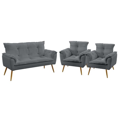 Características do Produto: Madeira de eucalipto proveniente de reflorestamento Fixação com grampos galvanizados Espuma Poliuretano D20 Enchimento com fibra siliconada e flocos Produto costurado Poltrona almofadada Revestimento: Sued Cor: Cinza Tamanho: Único Possui pés: Sim Tipos de pés: Pés palitos Possui 12 pés palitos de 25 cm Poltrona suporta até 90 kg Poltrona namoradeira suporta até 180 kg Embalagem: plástico bolha, papelão ondulado, plástico Garantia de 3 meses contra defeitos de fábrica.