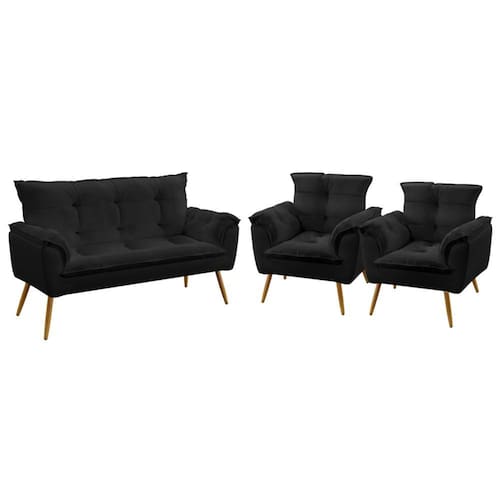 Características do Produto: Madeira de eucalipto proveniente de reflorestamento Fixação com grampos galvanizados Espuma Poliuretano D20 Enchimento com fibra siliconada e flocos Produto costurado Poltrona almofadada Revestimento: Sued Cor: Preto Tamanho: Único Possui pés: Sim Tipos de pés: Pés palitos Possui 12 pés palitos de 25 cm Poltrona suporta até 90 kg Poltrona namoradeira suporta até 180 kg Embalagem: plástico bolha, papelão ondulado, plástico Garantia de 3 meses contra defeitos de fábrica.