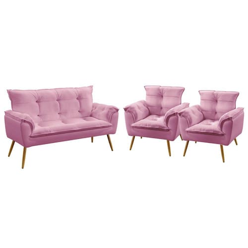 Características do Produto: Madeira de eucalipto proveniente de reflorestamento Fixação com grampos galvanizados Espuma Poliuretano D20 Enchimento com fibra siliconada e flocos Produto costurado Poltrona almofadada Revestimento: Sued Cor: Rosê Tamanho: Único Possui pés: Sim Tipos de pés: Pés palitos Possui 12 pés palitos de 25 cm Poltrona suporta até 90 kg Poltrona namoradeira suporta até 180 kg Embalagem: plástico bolha, papelão ondulado, plástico Garantia de 3 meses contra defeitos de fábrica.
