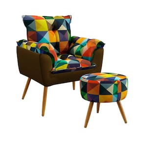 Kit Poltrona Opala e Puff Solar F-015 Sued Estampado Colorido com Veludo Aradecor - Marrom