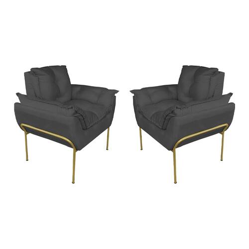 Kit Poltrona Recepção Suede Cinza Base Dourada - Vallisa Decor