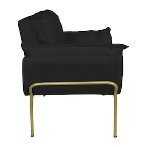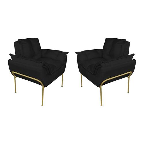 Kit Poltrona Recepção Suede Preto Base Dourada - Vallisa Decor