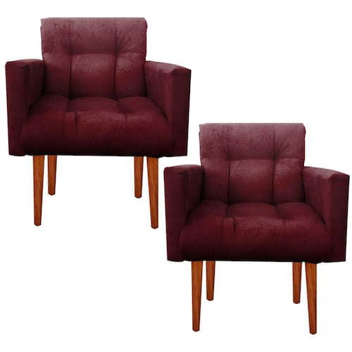 Kit Poltrona Sala De Estar Escritório Alexia Bordo - Bordô