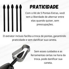 adquira o kit de 5 pontas extras e liberte sua criatividade troque entre as pontas quando quiser, sem medo de danificar sua caneta.