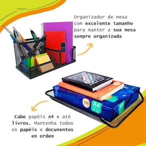 Para quem gosta de ter tudo sempre à mão, com agilidade e praticidade. Kit de organizadores de escritório é ideal para você. Com eles, você vai evitar a perda de tempo procurando os itens de que precisa e que usa com frequência. Tudo estará a sua mão.