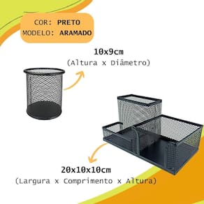 Kit escritório porta caneta lápis, organizador de mesa, bandeja organizadora e arquivo duplo preto