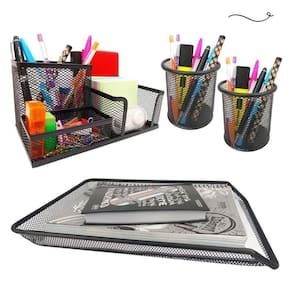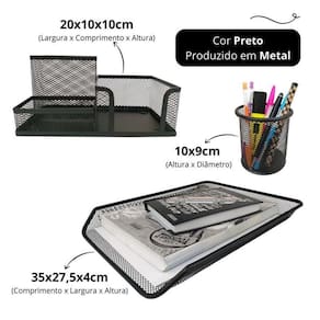 Kit porta caneta, bandeja organizadora e organizador de mesa preto Kit escritório porta caneta, organizador de mesa, bandeja organizadora preto