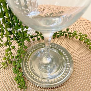 Fabricado em aço inox, o porta copos é resistente e durável, garantindo um uso prolongado. Com um diâmetro de 11 cm, os porta copos são de tamanho ideal para acomodar uma variedade de copos, taças ou canecas. Seu design brilhante com detalhes martelados dão um toque de elegância, sendo perfeito para qualquer ocasião.