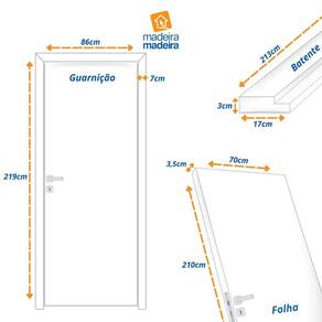 Batente MDF ultra (resiste à umidade) e regulável, com guarnição MDF/HDF regulável, folha da porta preenchimento sarrafeado, capa hdf, quadro eucalipto fingado, fechadura 3f roseta redonda linha design, dobradiça pino bola cromada 3x2 1/2 polegadas 1,5 mm e borracha de vedação italiana. Ambientes Recomendados: Interno Acompanha Batedor: Sim Acompanha Batente: Sim Acompanha Dobradiça: 03 Acompanha Fechadura: Sim Acompanha Guarnição: Sim Acompanha Manual de Instalação: Sim Acompanha Puxador: Não Acompanha Trinco: Sim Altura: 210 cm Ambiente Principal: Quarto Cor: Cinza Cor do Produto: CINZA Dimensão da Máquina da Fechadura: 40 mm Elétrica: Não Escala de Brilho: Semi-Brilho Espessura: 3,5 cm Informações Complementares: USO INTERNO Isolamento Acústico: Sim Itens Inclusos: FOLHA, BATENTE, GUARNIÇÃO E FERRAGENS Lado de abertura: Direita Largura: 70 cm Largura do Batente: 17 cm Linha ou Coleção: Tradicional Manual de Montagem e Instalação: https://product-hub-prd.madeiramadeira.com.br/903739/documents/ac8cd4bb-416c-4bd5-9fe9-1331938ad4c2anualinstalaCAokitportapdf.pdf Material Principal: Madeira Necessita Montagem: Não Número de Folhas: 01 Origem do Produto: Nacional Peso: 36,26 kg Possui Grade: Não Recomendações de Uso, Manutenção e Limpeza: Fácil limpeza, pano umido, alcool Tamanho do Produto: 210cm x 70cm Textura da Porta: Lisa Tipo de Parede: Alvenaria Tipo de Porta: Abrir Vidro incluso: Não