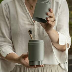 Aspen decor F6307 Kit banheiro dórica Contém: 1 - porta escova de dente dórica 2 - porta algodão e cotonete dórica Cheios de personalidade, os canelados são os detalhes que fazem toda a diferença na linha dórica, acompanhados por um acabamento fosco e uma cartela de cores de tons envolventes, os produtos desta linha vão trazer ainda mais estilo para o seu banheiro produtos fabricados em material resistente. plástico ps . porta escova de dente dórica o porta escova de dentes da linha dórica é a escolha perfeita para quem busca elegância e praticidade no banheiro. Ele adiciona um toque de sofisticação ao seu ambiente. Além disso, mantém sua escova de dentes sempre higienizada e seca, pronto para o uso diário. Garantindo uma rotina de higiene bucal eficiente. Fabricado em material resistente ps . Especificações: altura: 20,5cm largura: 7,8cm profundidade: 7,8cm Peso: 124g