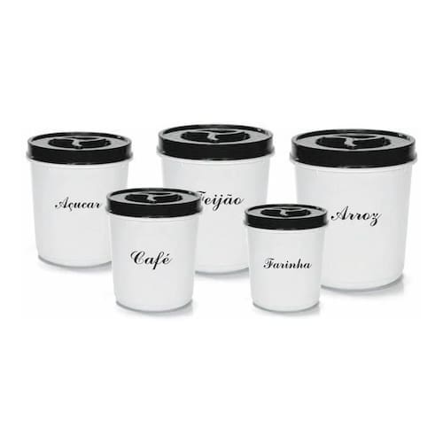 Com 05 potes de tamanhos distintos, é possível armazenar mantimentos e mantê-los protegidos. O conjunto é feito com material resistente.