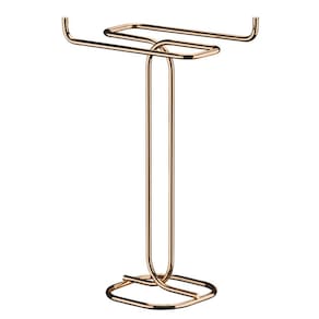Este suporte para papel higiênico foi desenvolvido em aço piatina com acabamento em Rosé Gold, o que proporciona um design moderno, e é revestido por uma camada extra de um protetivo especial, Rust Free, que resulta em uma resistência maior contra ferrugem.