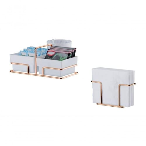 Kit Porta Sachê Açúcar, Chá, Adoçante E Porta Guardanapo Rosé Gold Future Kit cozinha 2 peças branco Future