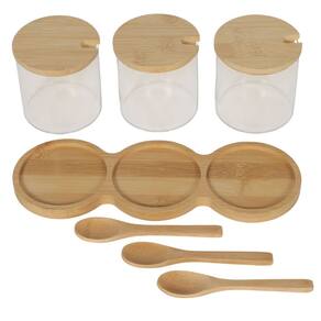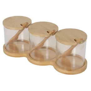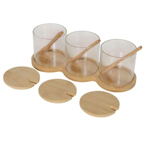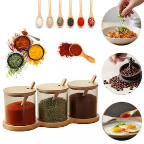 Kit Organizador de Temperos Premium: 3 Potes de Vidro, Tampas de Bambu e Colheres Inclusas