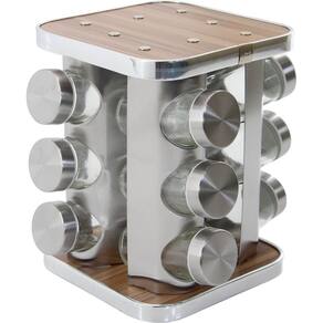 Kit Porta Temperos 12 Potes Com Suporte Giratório Em Inox - Porta condimento para cozinha