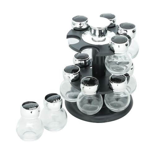 Características: Material de Qualidade: Os potes de vidro são duráveis e transparentes, permitindo a visualização dos temperos e facilitando a identificação. Tampa Plástica Vedante: As tampas plásticas vedantes mantêm os temperos frescos por mais tempo, preservando seu aroma e sabor. Base Giratória Poli Preta: A base giratória facilita o acesso aos temperos, permitindo uma organização eficiente e um uso mais prático. Dimensões Compactas: Com medidas de 20cm x 22,5cm, este conjunto ocupa pouco espaço na sua bancada ou prateleira, sendo ideal para cozinhas de todos os tamanhos.