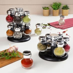 O Conjunto de 12 Porta Temperos de Vidro com Tampa Plástica e Base Giratória é a escolha perfeita para quem busca praticidade, organização e estilo na cozinha. Transforme a sua rotina culinária com este conjunto versátil e funcional, garantindo praticidade e beleza para o seu dia a dia.O Conjunto de 12 Porta Temperos de Vidro com Tampa Plástica e Base Giratória oferece praticidade, organização e estilo para sua cozinha. Com potes duráveis, tampas vedantes e base giratória, é perfeito para manter seus temperos frescos e acessíveis. Conquiste funcionalidade e beleza na sua rotina culinária!