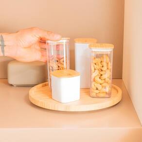 01 - Organizador Giratório Keep Bambu 25 x 25 x 2,5 cm : Sistema giratório de 360 para organizar e facilitar o acesso aos itens, perfeito para quem busca uma rotina mais prática e organizada.