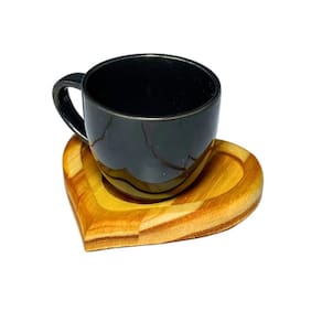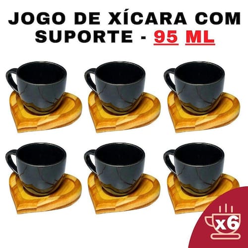Kit porta xícara coração com xícara porcelana preto 95ml Quantidade: 6 Atenção leia a descrição.