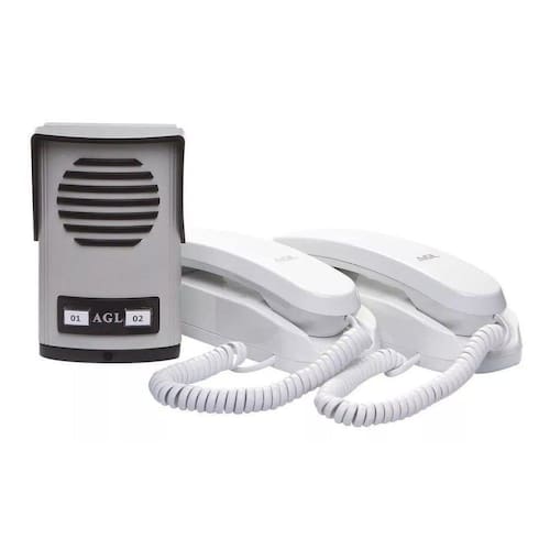 Kit Porteiro Eletrônico Coletivo de 2 Pontos Com 2 Monofones AGL - Condomínios Residenciais ou Edíficios foi desenvolvido com alto padrão que permite o ajuste de áudio interno e externo em seu gabinete e acionamento de fechadura elétrica. É ideal para condomínios ou edifícios.