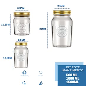 Kit Pote Americano Mantimento Vidro Vintage 500ml ,1000ml e 1500ml Nadir 3 unidades