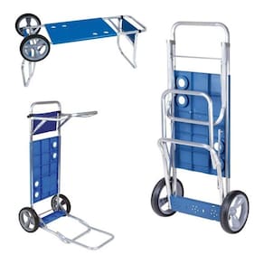 O carrinho de praia Mor suporta até cinco cadeiras, guarda-sol e esteiras e, para maior praticidade, possui porta-objetos pequeno, excelente para passar o dia inteiro na praia e fazer todas as suas refeições em frente ao mar.
