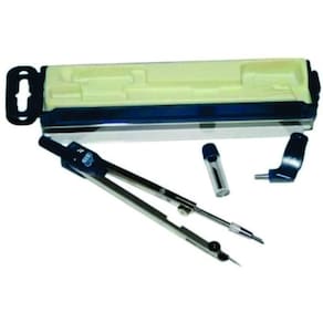 2- compasso para desenho técnico, com precisão. Acompanha estojo com mina extra. Compasso construído em corpo metálico, alta durabilidade.