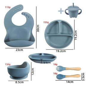 Material: silicone Especificações: Conjunto de 8 peças Conjunto contém: babador, prato de jantar, tigela, copo, garfo e colher Medidas: Copo com canudo: 10 cm de altura e 8 cm de diâmetro Tigela: Altura 7,5 cm e 12 cm de diâmetro Babador: 25 cm de altura, 19 cm de comprimento Prato: 20 cm de diâmetro e 3 cm de altura Garfo: 14 cm de comprimento e 0,5 cm de largura Colher: 14 cm de comprimento e 0,5 cm de largura Marca: Não Informado