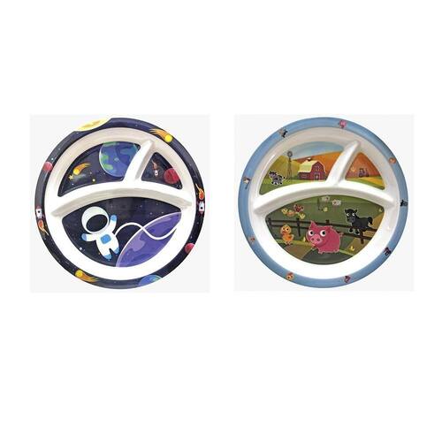 Contém: 2 Pratos Infantis Modelo: Astronauta e Fazenda.