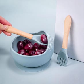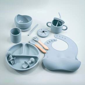 Prato com ventosa: Ideal para as primeiras tentativas de alimentação independente. A ventosa forte evita que o prato escorregue e derrame a comida. Copo: Perfeito para líquidos e fácil de segurar pelas pequenas mãos. Talheres: Colher e garfo macios e flexíveis, ideais para as gengivas sensíveis e para as primeiras descobertas dos alimentos. Babador: Captura todas as migalhas e respingos, mantendo a roupa do seu bebê sempre limpa. Tigela: Ideal para sopas, frutas e outros alimentos.
