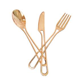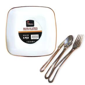 Contém: 6 unidades Pratos sobremesa Luxo Acrílico Quadrado borda rose 18,5cm + 18 talhares 6 facas, 6 garfos e 6 colheres .