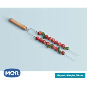A escolha do espeto ideal para seu churrasco é fundamental. Por isso a Mor desenvolveu uma linha completa de espetos e acessórios para atender todos os tamanhos de churrasqueiras e atender aos mais exigentes churrasqueiros. O Espeto Duplo 55cm da linha churrasco é feito em arame de aço com acabamento em cromo, perfeito para assar uma costela, picanha, sobrecoxa de frango, lombinho de porco ou até aquele delicioso pão com alho. Além disso, o cabo garante a sua segurança, pois minimiza o risco de queimaduras. Especificações MATERIAL Aço Cromado OBSERVAÇÕES Os objetos que ambientam as imagens não acompanham o produto 90 Dias ALTURA 2,60 Centímetros LARGURA 4,50 Centímetros COMPRIMENTO 55,00 Centímetros PESO 138,00 Gramas Marca: Não Informado Ean: 7843978101637