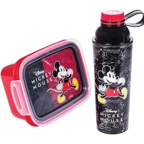 Kit Presente Mickey composto por garrafa de 660 ml e pote marmita hermética de 850 ml, ideal para o dia a dia, escola, trabalho ou passeios. Com design moderno e estampas do personagem Mickey, é perfeito para quem gosta de produtos práticos e cheios de estilo.