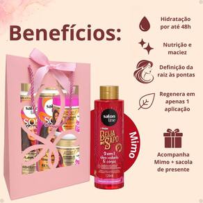 A rotina de cuidados que seus cachos merecem: hidratação, nutrição, definição e brilho em cada etapa com um toque especial de carinho e perfume. Ideal para presentear ou se cuidar com estilo!