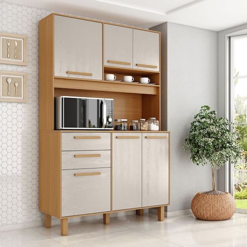 Transforme sua cozinha com o Kit Prime 6P 2G! Com design moderno e acabamento elegante, ele oferece amplo espaço para organizar louças, mantimentos e utensílios. Possui 6 portas e 2 gavetas com corrediças telescópicas, garantindo abertura suave e maior durabilidade. As portas contam com puxadores em MDF e os pés plásticos têm regulagem de altura para melhor nivelamento. Conta ainda com nicho para micro-ondas de até 25L. Dimensões: 120 cm (largura) x 193,4 cm (altura) x 38,1 cm (profundidade). Ideal para quem busca praticidade e estilo! Acabamento da Prateleira: Pintura Texturizada UV Escala de Brilho da Prateleira: Fosco Acabamento da Gaveta: Pintura Texturizada UV Escala de Brilho da Gaveta: Fosco Material do Puxador da Gaveta: MDF Acabamento da Porta: Pintura Texturizada UV Escala de Brilho da Porta: Fosco Material do Puxador da Porta: MDF Acompanha Rodapé Decorativo: Não Acompanha Tampo: Sim Ambiente Principal: Cozinha Balcão Suporta Pia: Não codigo_ean: 7900288347985 Complexidade da Montagem: Alta: deve ser montado por um montador especializado Cor: Cinamomo / Areia Cor do Produto: Cinamomo / Areia Cor Interna: Cinamomo Escala de Brilho: Fosco Espessura do Material da Estrutura: 12 mm Gaveta com Chave: Não Informações Complementares: Produto Comporta Micro-Ondas de 25 L Itens Inclusos: 1-Kit Prime (1,20 M) + Manual de Montagem + Kit de Ferragens Linha ou Coleção: Prime Manual de Montagem e Instalação: https://product-hub-prd.madeiramadeira.com.br/652674897/documents/24b742c2-4dd1-4b10-963c-265a7fb0dc5f3419241573817721298711438.pdf Marca: Zanzini Material da Corrediça: Metálica Material da Dobradiça/Corrediça da Porta: Metálica Material da Gaveta: MDP Material da Porta: MDP Material da Prateleira: MDP Material do Fundo: MDF Material do Tampo: MDP Material dos Pés: Plástico modular: Não Montagem Flex: Não Necessita Montagem: Sim O Balcão Acompanha Pia: Não Origem do Produto: Nacional Pés Reguláveis: Sim Peso: 54 kg Peso Máximo por Gaveta: 3 kg Peso Máximo por Prateleira: 5 kg Possui Pés: 05 Possui Portas: Sim Possui Prateleiras: Sim Possui recorte para Cooktop: Não Possui Rodízio: Não Possui Vidro: Não Produto Montado: Sim Recomendações de Uso, Manutenção e Limpeza: Limpe com Pano Macio Seco; não Use Produtos Abrasivos, Químicos ou Álcool; Evite Impactos, Arranhões, Exposição Direta à Luz Solar e Um Sapatas Niveladoras: Não Sistema de Montagem: Parafusos Auto Atarraxantes, Cola, Cavilhas, Pregos, Minifix Suporta Até (kg): 41 kg Tamanho Indicado da Pia: 00 Tipo de Corrediça da Gaveta: Metálica Telescópica Tipo de Dobradiça da Porta: Simples Tipo de Puxador da Gaveta: Externo Tipo de Puxador da Porta: Externo