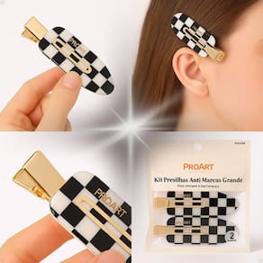 O Kit Proart: 2 Presilhas Anti Marcas Grande Pdc58b da PROART é a solução ideal para quem busca praticidade e cuidado ao prender os cabelos. Perfeitas para uso durante a maquiagem, skin care ou em qualquer momento que precise prender a franja ou lateral do cabelo, essas presilhas garantem que seus fios fiquem no lugar sem sujar ou, o mais importante, sem deixar marcas indesejadas. Desenvolvidas para todos os tipos de cabelo, elas oferecem uma fixação firme e são facilmente removíveis, preservando a saúde e a estética dos seus fios.