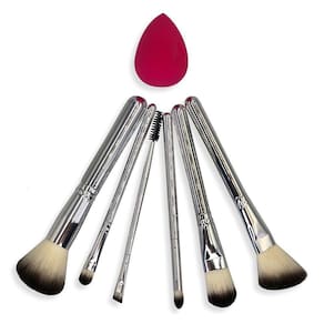 com esse kit você estará equipada para soltar a criatividade e realizar as mais diversas maquiagens. o kit conta com: - 01 pincel arredondado para pó;- 01 pincel para pó e iluminador;- 01 pincel topo angular para base;- 01 pincel para sombra e esfumar;- 01 pincel para esfumar;- 01 pincel chanfrado e escova 2 em 1 ;- esponja gota média. especificações:material: nylon e prolipropileno dimensões:- pincel de pó - alt: 17cm x larg: 4,2cm.- pincel língua de gato - alt: 17,5cm x larg: 04cm.- pincel chanfrado - alt: 16,3cm x larg: 2,1cm.- pincel de sombra - alt: 16cm x larg 13cm.- pincel oval - alt: 16cm x larg: 1,3cm.- pincel chanfrado com escova - alt: 16cm x larg: 0.5cm.- esponjinha - alt: 4,2cm x larg: 5,7cm. peso: 0,60g aprox. cor: prata e branco