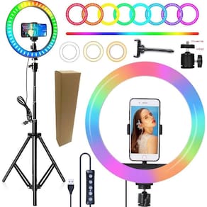 Kit profissional hing light grande rgb suporte celular microfone de mesa + lapela tripé 2 metros makeup selfie completo Kit youtuber com eletrônica Kit microfone de mesa + lapela iluminador ring light rgb tripé 2,10m Kit profissional,completo,de qualidade e com eletrônica.São itens incluindo tripé todo em alumínio para melhor qualidade de seus vídeos e fotos. Com este modelo você consegue usar o celular tanto na vertical quanto na horizontal Possui também ball head permite rotação de 360º do ring O kit contém: 1 microfone de lapela 1 microfone condensador de mesa profissional com mini tripé 1 tripé de até 2,10m de alcance 1 anel ring light de led 26cm rgb 1 encaixe articulado 1 suporte de celular para o ring light 1 adaptador p2 O adaptador permite que o microfone de lapela seja utilizado Em celulares ou em aparelhos que não tenham entrada para plug p2 de 3 vias comprimento do cabo do microfone de lapela: 1 metro e meio. Aviso: em celulares nokia com o sistema operacional windows phone não funciona. O microfone condensador de alta sensibilidade profissional é um dos mais completos do mercado, com ótimo custo benefício. Ideal para e amador, exercendo suas gravações com maestria. Possui conexão p2 padrão de microfone, o que torna o uso universal seja em pc,notebook,também acompanha adaptador para usar o microfone em celulares. O ring light led rgb possui 6 tipos de cores, tem 3 opções de temperatura de cores e 10 opções de intensidade da cor, podendo ser alternados direto no controle de iluminação, os efeitos podem ser de acordo com diferentes ambientes de escurecimento. Também possui as cores tradicionais -branco -branco frio -branco quente Com o ball head em rotativa de 360 graus é fácil de ajustar o ângulo de luz desejado Sua alimentação é atraves do usb que pode ser em computador host, laptop, banco de energia móvel ou ligado na tomada através de um adaptador de celular não acompanha O ring light é perfeito para streaming , estudos, fotos, video, filmagem e muito mais. Características do produto: . Possui controle remoto com fio para controle das cores e efeitos desejados em seus ambientes, vídeos e fotos; . Possui tripé de 2,10 cm de altura, super resistente que proporciona maior estabilidade para o equipamento; Está incluso também o suporte pra colocar o celular no meio do ring light Dimerizável: sim Tamanho do ring light: 26 cm - equivalente a 10 polegadas Possui suporte para celular: sim Melhor kit custo benefício. Postamos em até 24 horas úteis. Importante: Fotos ilustrativas Kit acompanha uma unidade de cada item Homologação Anatel: 060792000160
