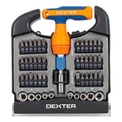 Produto Jogo de Ferramentas Material Metal Tipo de Material Aço Polido Marca Dexter Uso Indicado dos Jogos e Kits Multiuso Quantidade de Peças 48 peça s Uso Indicado Multiuso Produto Acompanha Embalagem Sim Tipo de Embalagem Maleta Altura da Embalagem 22 cm Largura da Embalagem 17,6 cm Profundidade da Embalagem 4,4 cm Peso do Produto na Embalagem 0,69 Kg Conteúdo da Embalagem 1 Chave T, 1 Extensor de Bit, 36 Bits 25mm em Aço Cromo-Vanádio e 10 Soquetes de Aço Carbono 4/ 4.5/ 5/ 6/ 7/ 8/ 9/ 10/ 11 e 12mm Dimensão da Embalagem 220x176x440 mm Possui Fecho Sim Material do Fecho Plástico Acompanha Maleta Sim Material da Maleta Plástico Linha Profissional