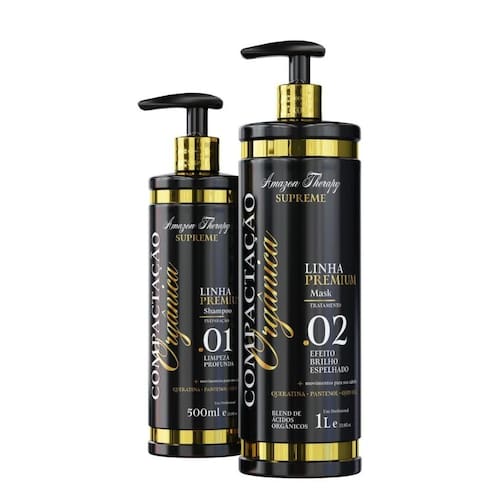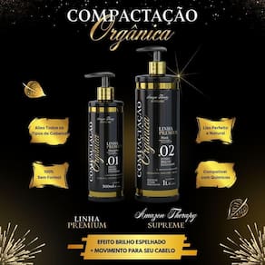 Kit progressiva orgânica sem formol não danifica os fios Progressiva orgânica linha premium Progressiva orgânica compactação amazon therapy supreme combina ingredientes naturais e orgânicos, como a de tucumã, ojon oil e pantenol, blends de vitaminas e red fruits, para promover uma reconstrução profunda e duradoura. Com a progressiva orgânica amazon therapy, você poderá alisar os cabelos dos seus clientes, enquanto proporciona tratamento intenso de dentro pra fora. Ao adquirir a compactação orgânica amazon therapy supreme, você estará investindo em um produto de alta qualidade e tecnologia. Componentes: - queratina - pantenol - agan oil Benefícios da compactação amazon therapy supreme: - não possui formol ou derivados - é compatível com químicas e colorações - 100% vegana e orgânica - não provoca ardor nos olhos - não tem cheiro forte - produto totalmente seguro Princípios ativos: Blends de ácidos cítricos 100% orgânicos Blends de aminoácidos Compatibilidade: Como grande vantagem a compactação orgânica amazon therapy supreme é compatível com todas as químicas e colorações. Registro Anvisa: 25351.9088/2024-44 Cuidados com o produto: - realizar teste de mechas para verificar a resistência do cabelo; - em caso de contato com os olhos lavar em água corrente; - deixar fora do alcance de crianças. - armazenar em local fresco e arejado. Tempo de duração: Semi definitiva, não sai do fio. Conteúdo: 1 step1 preparação shampoo limpeza profunda 500ml 1 step2 progressiva orgânica compactação orgânica amazon therapy supreme 1 litro Marca: Não Informado