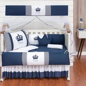 TOTAL 11 PEÇAS:1 Edredom 1.30X0.75mts1 Cabeceira 0.57X0.37mts2 Lateral 1.25X0.25mts1 Lençol de cima 1.30X0.90mts1 Fronha 0.28x0.38mts 1 Bando de mosquiteiro 1.40x0.20mts1 Mosqueteiro 4.50x1.50mts1 Trocador 0.50x0.40mts1 Almofada Coroa 0.50x0.20mts1 Saia Para Berço 1.30x0.70x0.30mtsDescrição das peças :Tecido estampado 100% algodão Tecido liso 100% poliéster Jogo de lençol tecido 100% ALGODÃO Enchimento 100% poliésterMosqueteiro 100% poliamidaInformações Importantes:O produto já vai pronto para o uso, com o enchimento já incluso.Acompanha as peças conforme a descrição, não esta incluso o BerçoA cabeceira e as laterais do kit possuem zíper para retirar o enchimento, facilitando assim uma possível lavagem do produto. Marca: L2m